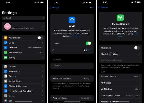 Étape 1 Allez dans "Réglages > Wi-Fi" ou "Réglages > Service Mobile" sur votre iPhone et assurez-vous qu'il y a une connexion.