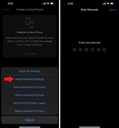 Étape 3 Appuyez maintenant sur "Réinitialiser les réglages réseau" et saisissez votre mot de passe pour confirmer la sélection.